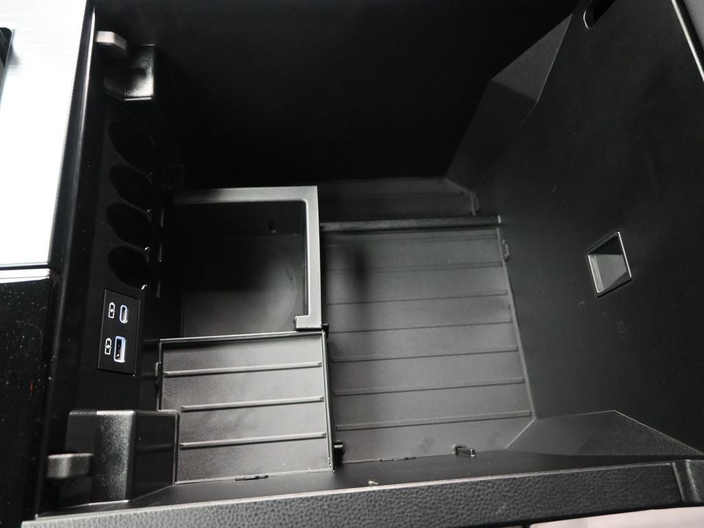 - Illuminated center console storage bin and glove box