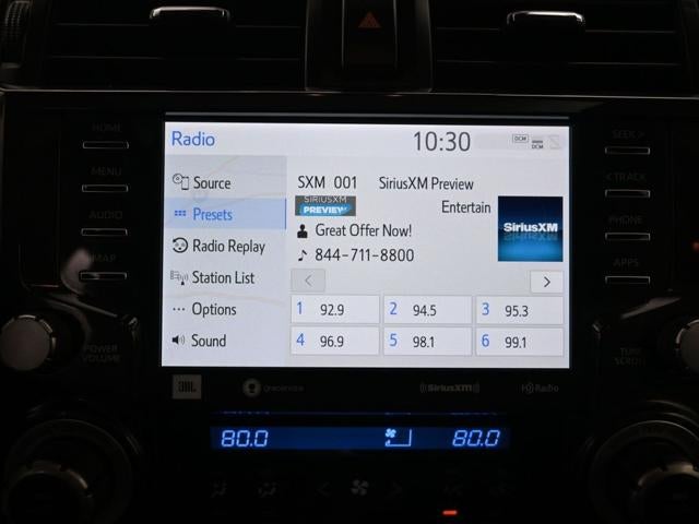 **NAVIGATION**, **APPLE CARPLAY**, **ANDROID AUTO**, 4WD, Black/Graphite w/SofTex Seat Trim, Black Lug Nuts, Dual Zone Auto Climate Control, Fog Lights, Fox Shocks, Garage Door Opener, Heated Outside Rear-View Mirrors, Moonroof w/Tilt Up & Slide, Multi-Terrain Back Monitor, Navigation System, Roof Rack, TRD Pro All Weather Floor Liner, TRD Pro Badging, TRD Pro Exhaust, TRD Pro Package, TRD Shift Knob, Wheel Locks, 15 Speakers, 3.727 Axle Ratio, 4-Wheel Disc Brakes, ABS brakes, Air Conditioning, Alloy wheels, AM/FM radio: SiriusXM, Anti-whiplash front head restraints, Apple CarPlay/Android Auto, Auto High-beam Headlights, Auto-dimming Rear-View mirror, Automatic temperature control, Brake assist, Bumpers: body-color, Compass, Driver door bin, Driver vanity mirror, Dual front impact airbags, Dual front side impact airbags, Electronic Stability Control, Emergency communication system: Safety Connect (1-year trial), Front anti-roll bar, Front Bucket Seats, Front Center Armrest, Front dual zone A/C, Front fog lights, Front reading lights, Front wheel independent suspension, Garage door transmitter: HomeLink, Heated door mirrors, Heated Front Bucket Seats, Heated front seats, Illuminated entry, Knee airbag, Leather Shift Knob, Low tire pressure warning, Occupant sensing airbag, Outside temperature display, Overhead airbag, Overhead console, Panic alarm, Passenger door bin, Passenger vanity mirror, Power door mirrors, Power driver seat, Power moonroof, Power passenger seat, Power steering, Power windows, Radio: Premium Audio w/JBL, Rear anti-roll bar, Rear seat center armrest, Rear window defroster, Rear window wiper, Remote keyless entry, Roof rack, Security system, SofTex Seat Trim, Speed control, Speed-sensing steering, Split folding rear seat, Spoiler, Steering wheel mounted audio controls, Tachometer, Telescoping steering wheel, Tilt steering wheel, Traction control, Trip computer, Variably intermittent wipers, Wheels: 17 Matte Black Flow-Formed TRD Alloy, **BACK UP CAMERA**, **LOCAL TRADE**, **LANE ASSIST**, **BLIND SPOT MONITOR**, **BOUGHT HERE**, **SERVICED HERE**, **Bluetooth®**, **CLEAN CARFAX, NO ACCIDENTS**, **HEATED SEATS**, **POWER SEAT**, **LEATHER SEATS**, **TOW PKG**, **MOONROOF**, **4WD**, 4WD, Black/Graphite w/SofTex Seat Trim, Black Lug Nuts, Dual Zone Auto Climate Control, Fog Lights, Fox Shocks, Garage Door Opener, Heated Outside Rear-View Mirrors, Moonroof w/Tilt Up & Slide, Multi-Terrain Back Monitor, Navigation System, Roof Rack, TRD Pro All Weather Floor Liner, TRD Pro Badging, TRD Pro Exhaust, TRD Pro Package, TRD Shift Knob, Wheel Locks.