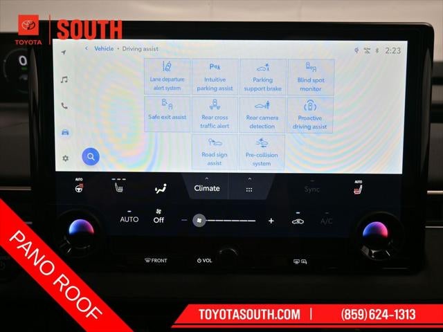 Stepping inside, you'll be greeted by a spacious and well-appointed cabin, featuring premium SofTex seat trim, a heated steering wheel, and a panoramic fixed-glass roof with a power sunshade. The intuitive 14-inch Toyota Audio Multimedia system, complete with navigation and a 3-year trial of Drive Connect, keeps you connected and informed on the road.